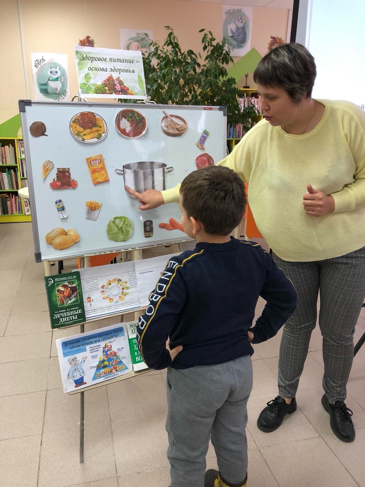 Такое интересное занятие, в рамках социального партнерства, прошло в Анопинской библиотеке для ребят старшей группы. Юлия Валерьевна рассказала детям о важности здорового питания, о полезных и вредных продуктах. Дети с удовольствие , в игровой форме, готовили завтрак, обед и ужин, выбирая для своих блюд только полезные продукты.