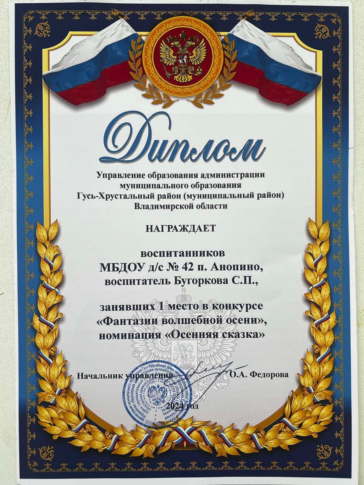 Поздравляем с победой в муниципальном конкурсе "Фантазии волшебной осени" Светлану Петровну Бугоркову!