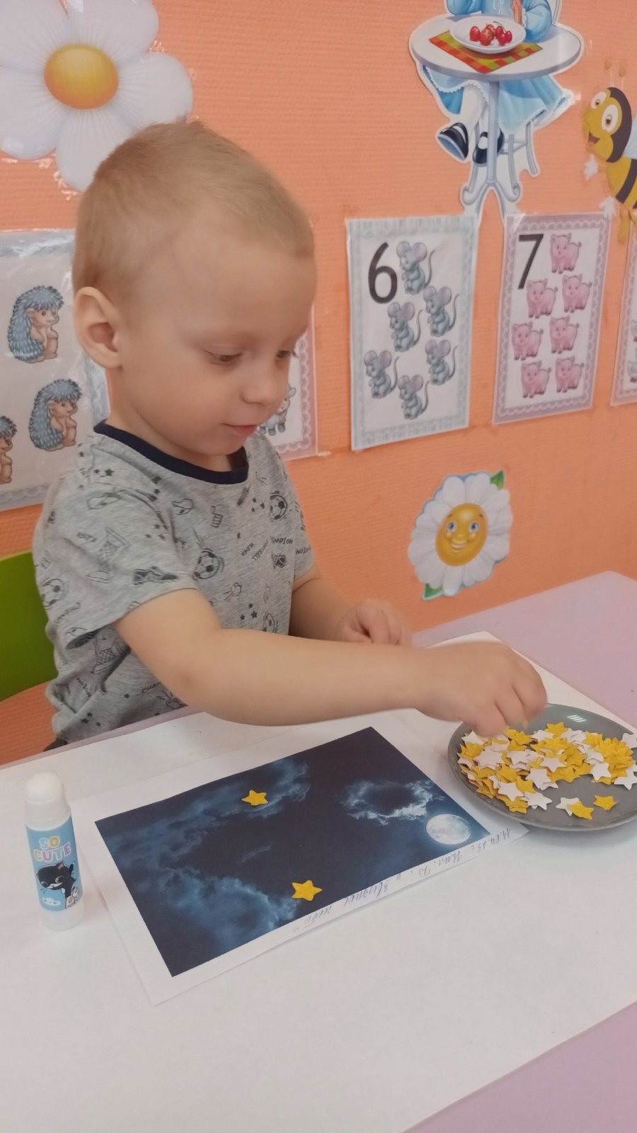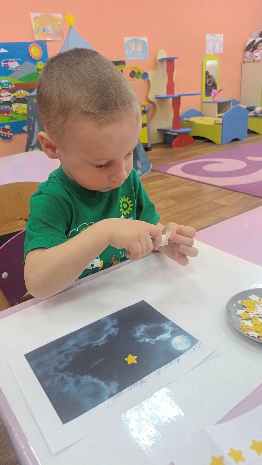Целью занятия было рассказать детям о космосе и о первом космонавте Юрие Гагарине, развить интерес к космонавтике, сформировать у детей первое представление о звездах.